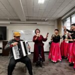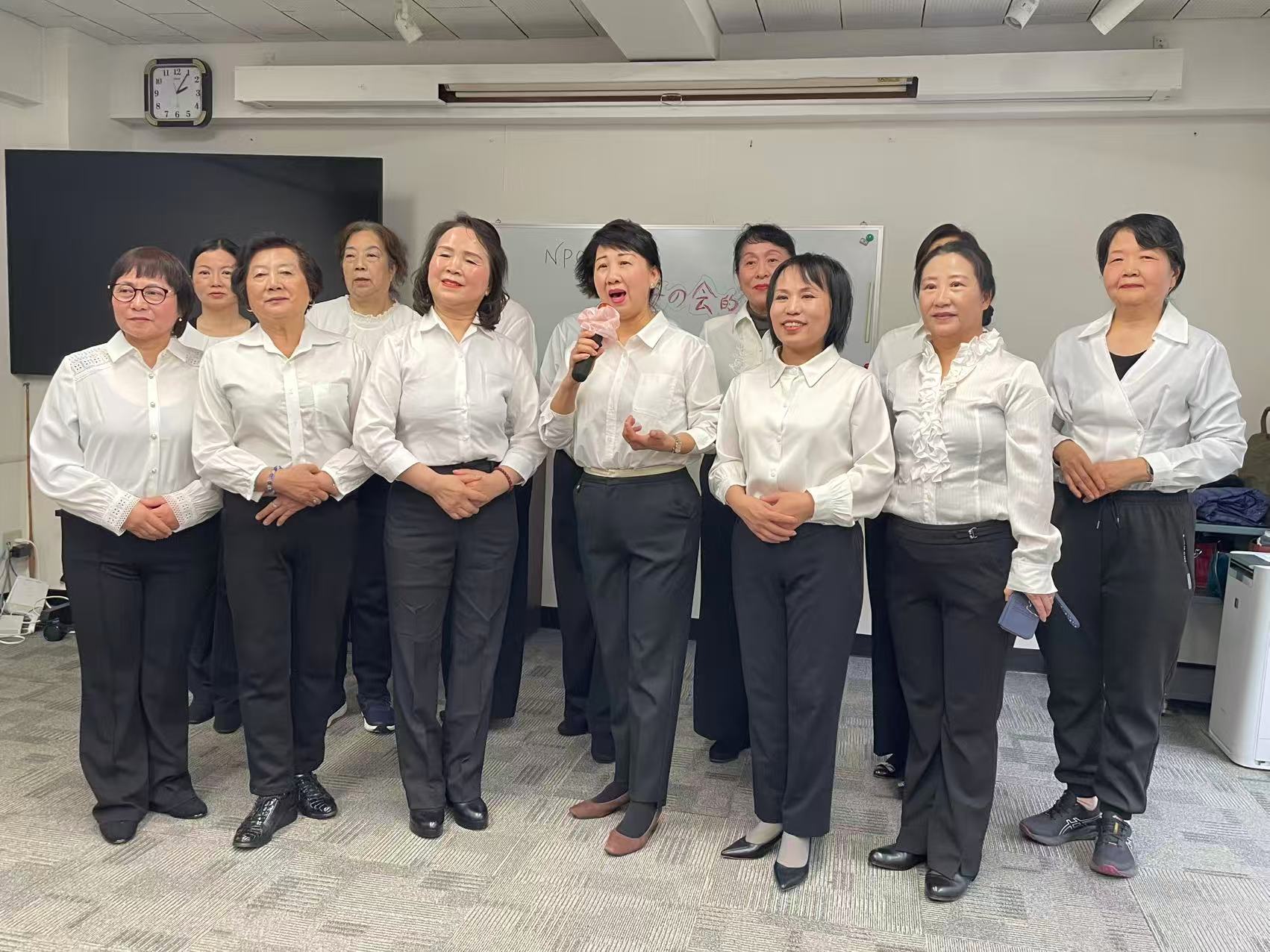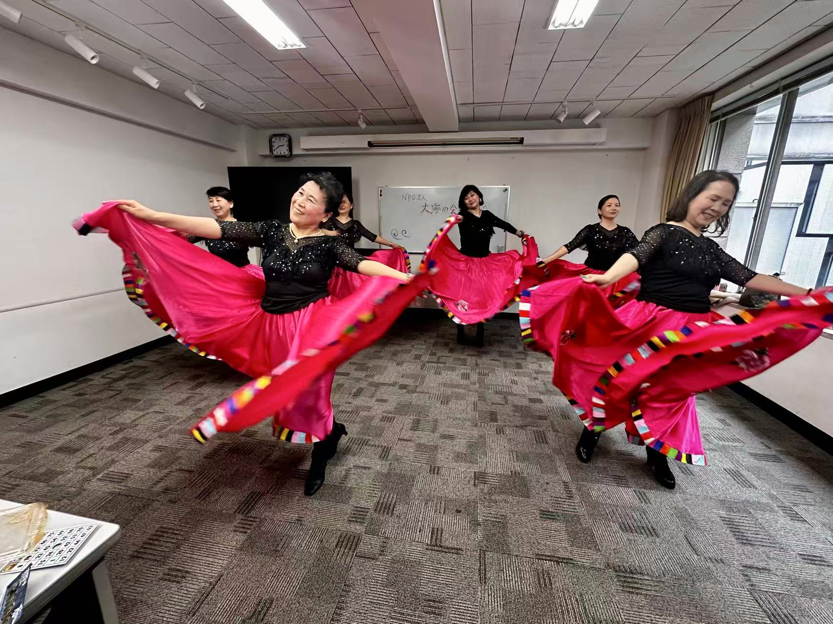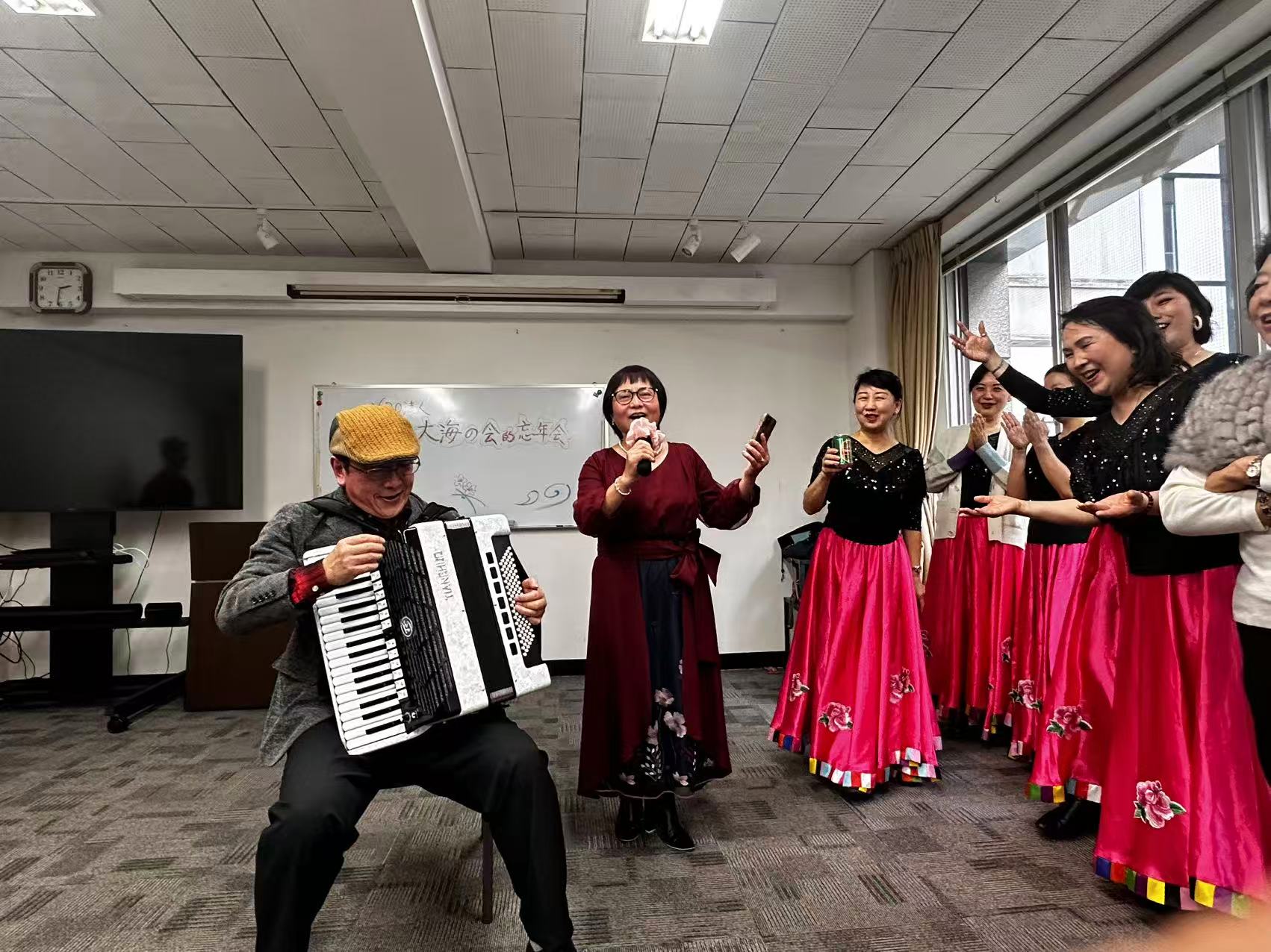 その後、会長による乾杯の発声が行われ、スタンバイしていた舞踊教室のメンバーによる歌と踊りが始まりました。美声と華やかで輝くばかりに美しく舞う姿に魅了されてしまいました。